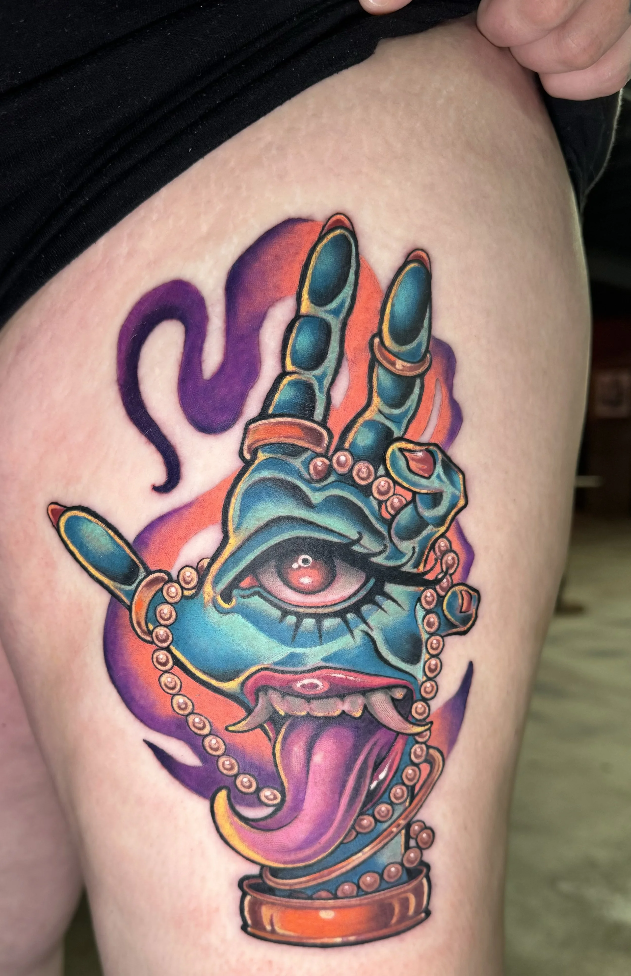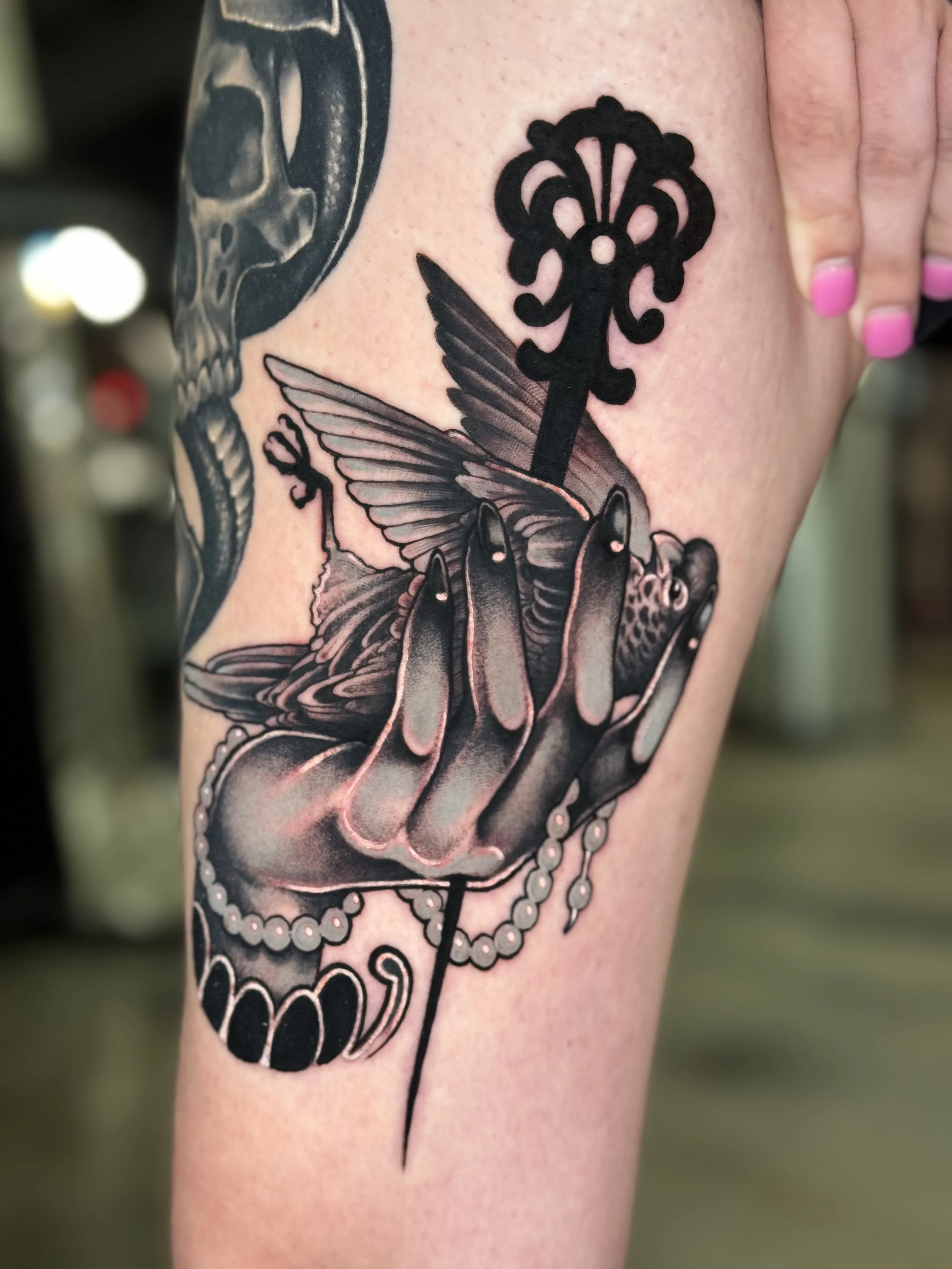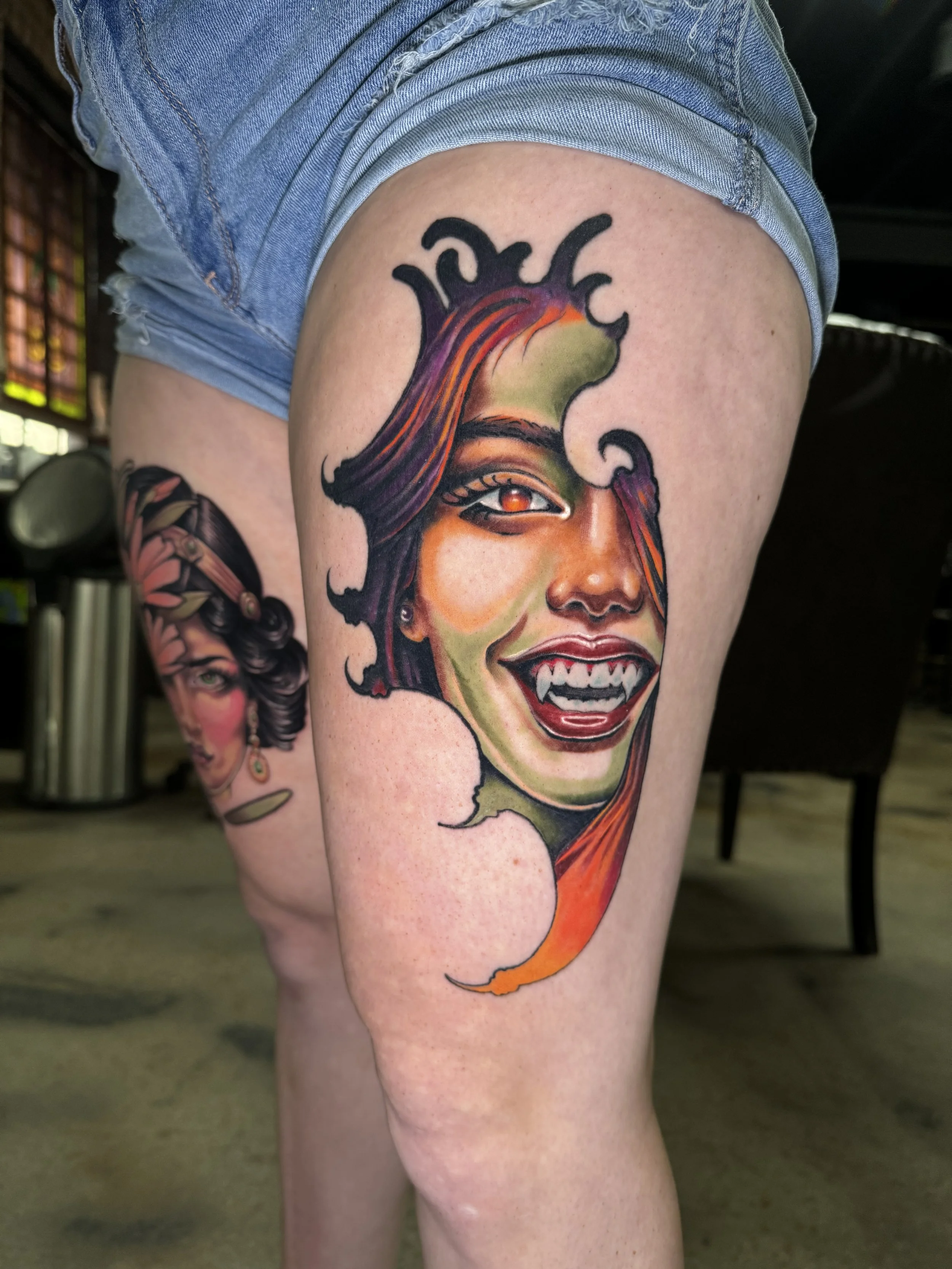 Steve’s style is a compelling mix of surrealism, dark fantasy, renaissance, neo-traditional, and pop culture influences. His talent not only shines in original creations but also in reworking and breathing new life into existing tattoos. He takes pride in being a safe space for his clients; valuing kindness, honesty, and approachability above all else.